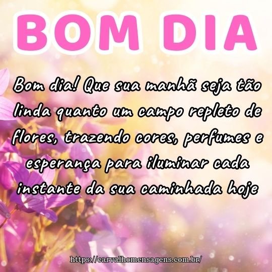 Desejo que sua manhã seja florida de alegrias, paz e esperança, para que cada instante hoje seja vivido com intensidade, gratidão e sorrisos verdadeiros.