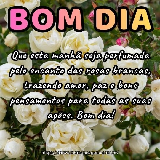 Que seu dia seja perfumado como um jardim de rosas brancas, trazendo paz, amor e energia positiva em cada instante. Bom dia!