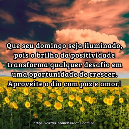 Um ótimo domingo para você, pois a vida se torna mais bonita quando escolhemos olhar para o lado positivo. Que seu dia seja leve e repleto de felicidade.