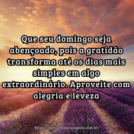 Tenha um domingo de gratidão e alegria, pois agradecer pelo que temos faz a vida ser mais leve e feliz. Que seu dia seja cheio de luz!
