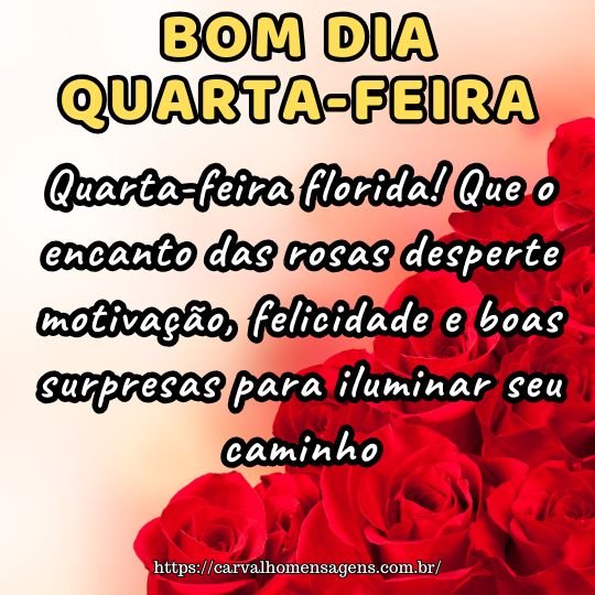 Que esta quarta-feira seja tão bonita quanto um campo de rosas ao amanhecer, iluminando seu coração e renovando sua confiança na vida.