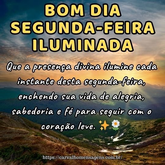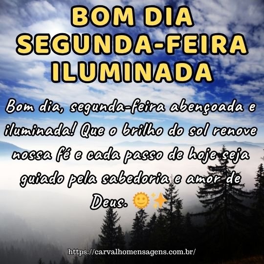 Segunda-feira abençoada e iluminada! Que o dia comece com fé, continue com esperança e termine com gratidão pelas pequenas e grandes vitórias. 🌅🙌
