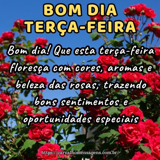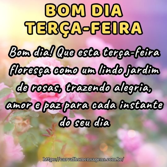 Que esta terça-feira seja tão bonita quanto um campo de rosas ao amanhecer. Que cada passo seu seja guiado pela paz.