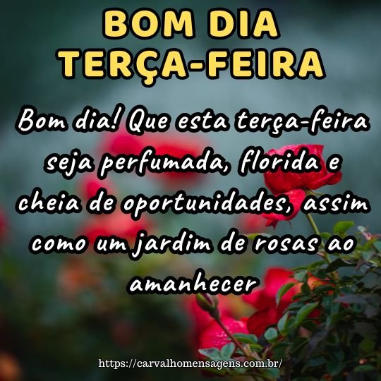 Bom dia! Que esta terça-feira seja perfumada pelas bênçãos de Deus e tão linda quanto um jardim de rosas.