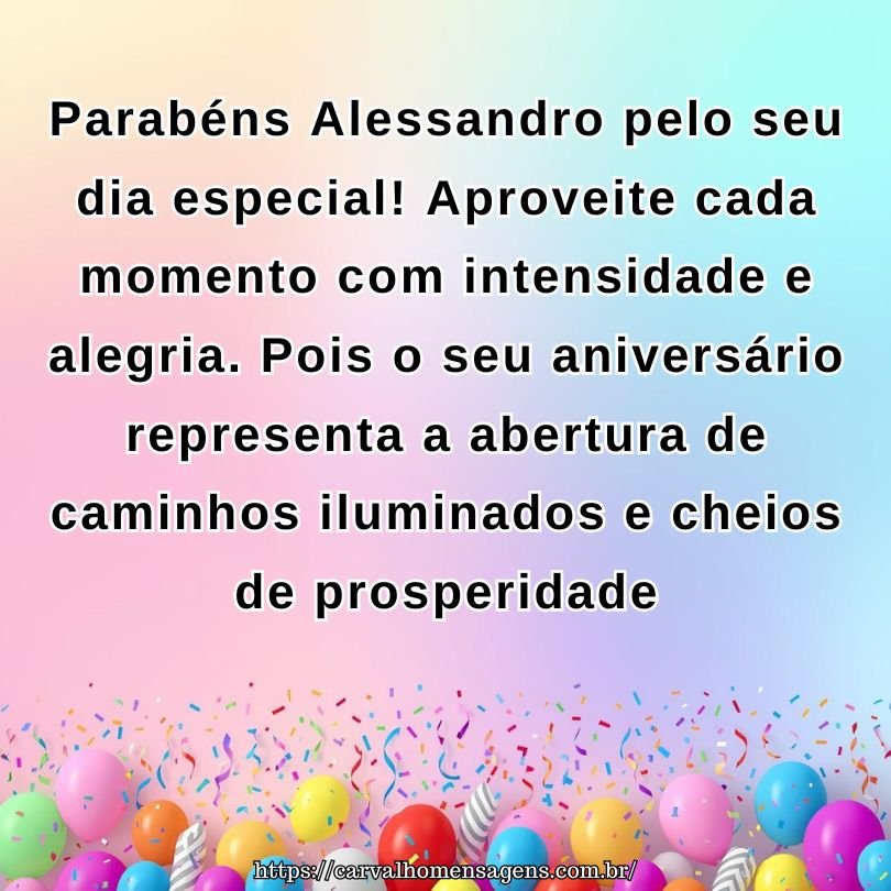 Feliz aniversário Alessandro com muita saúde! Desejo que a vitalidade seja sua companheira constante. Pois você possui uma garra admirável que motiva todos ao seu redor.
