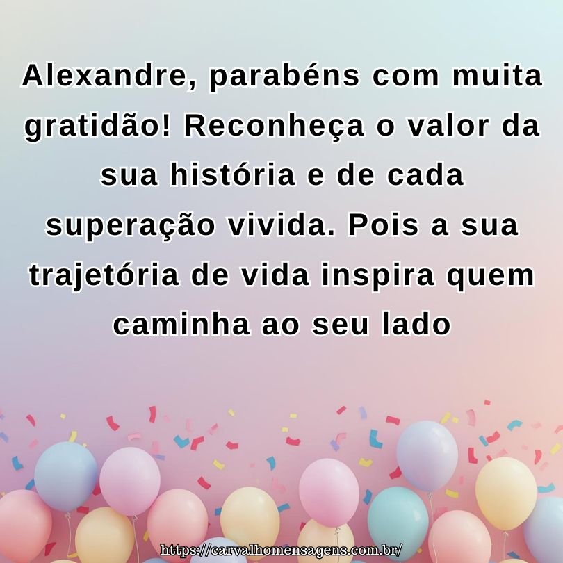 Parabéns Alexandre, receba meu abraço! Que as mensagens de afeto fortaleçam a sua alma neste dia. Pois saber que somos amados é o maior tesouro que podemos acumular.