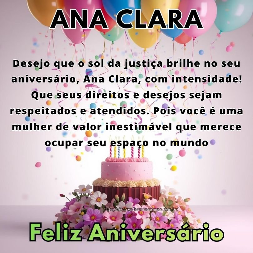 Ana Clara, curta a alegria contagiante do seu aniversário com muita diversão! Permita-se sorrir sem limites e brincar com a vida hoje. Pois a felicidade genuína é o segredo para manter a alma sempre jovem e radiante.