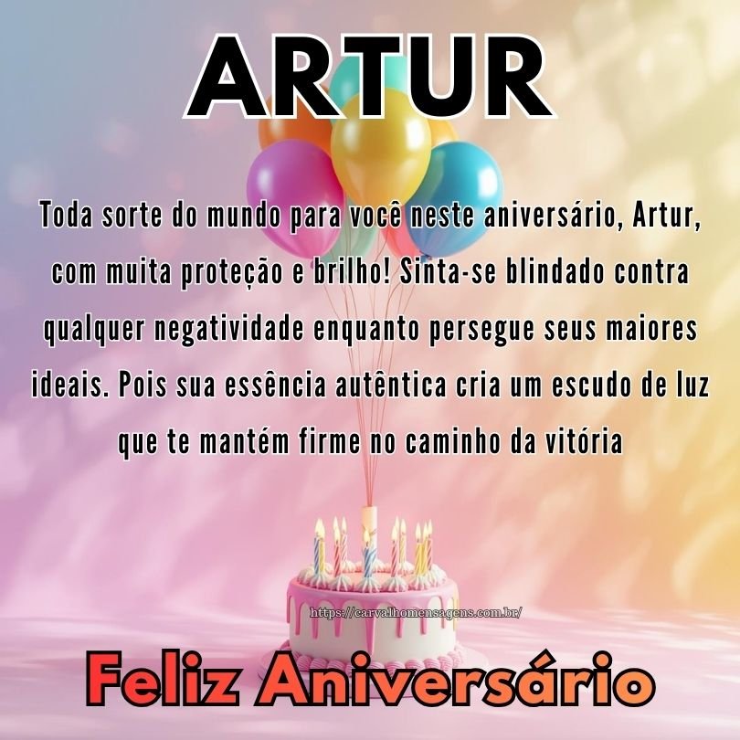 Artur, receba as melhores energias do universo neste aniversário encantador e único! Que cada mensagem de carinho eleve sua autoestima e sua confiança pessoal. Pois reconhecer o seu próprio valor é a chave mestra para viver uma vida plena de realizações.